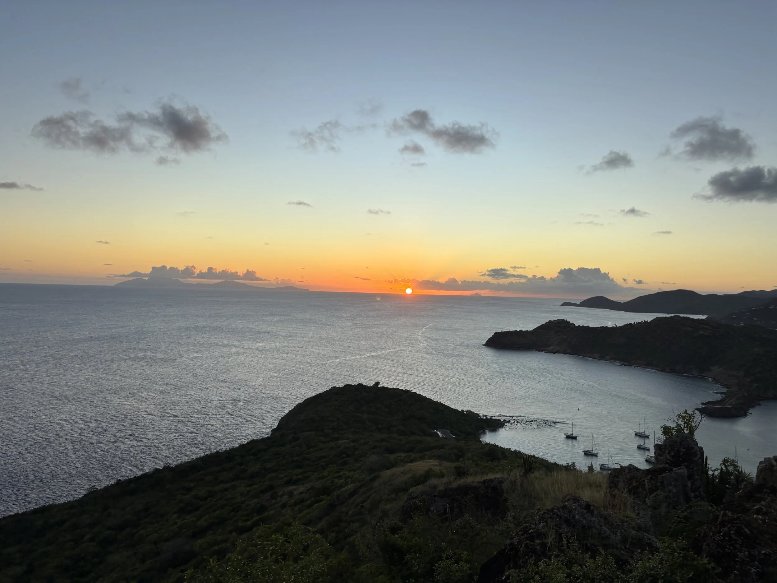 We left at dawn the following morning to sail up to Barbuda. I have to confess I got cold feet the night before reading about charts being inaccurate and lots of reefs. And swell. But we went - and so glad we did! Very cool anchorage and little island. It’s being developed like crazy (De Niro!) but right now it still feels real, with donkeys blocking passage on the dirt roads. (While people helicopter into a Nobu on the beach 🙄). Went to super cool bird sanctuary (frigates-did you know they can’t be in water, so they either have to catch the fish as it jumps, or steal from another bird - seems odd choice of profession I must say!!), pink beach, atm and customs. Had drinks with an English guy who is following James and approached as soon as we got in 🤣) and his crew - both full of fun stories . I’ve said it before: you meet such great people sailing! Then lobster dinner at sunset.